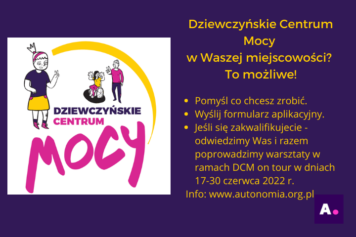 Zapraszamy grupy nieformalne (nawet 3 osobowe) i organizacje do składania aplikacji na współrealizację dwudniowych wydarzeń w Waszych społecznościach lokalnych w ramach projektu Dziewczyńskie Centrum Mocy on Tour.